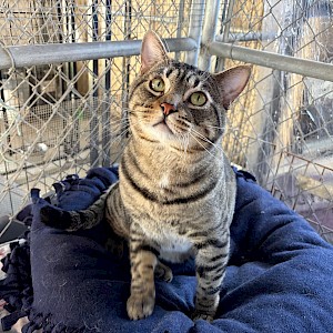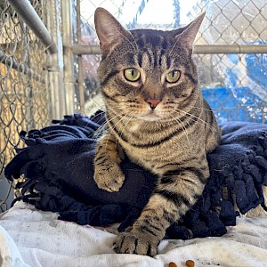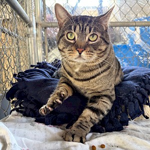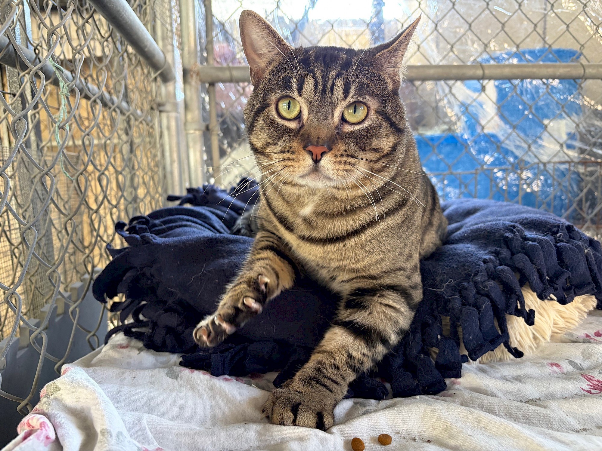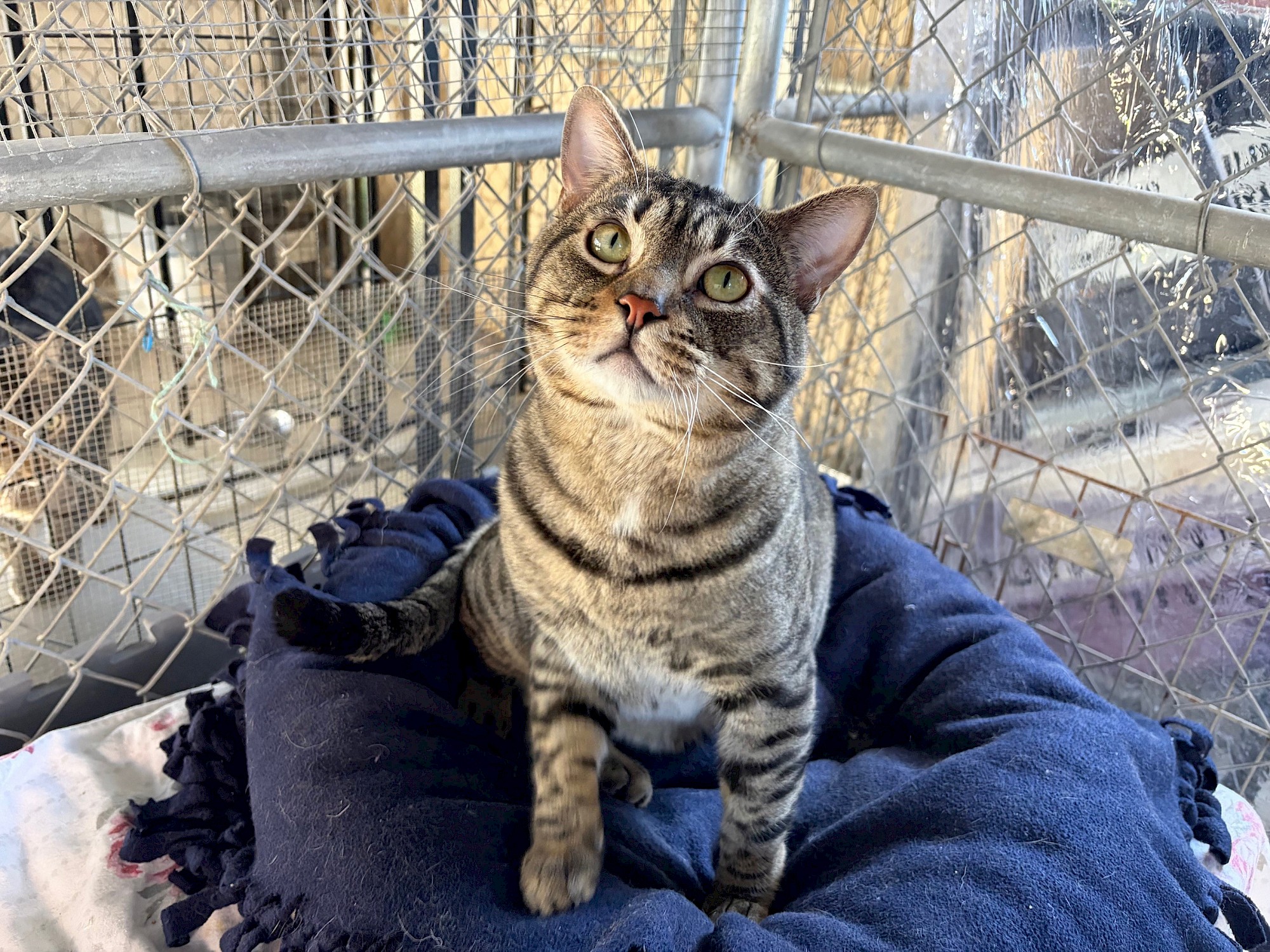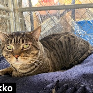 He’s a quiet, sensitive soul who may be a little scared at first — but give him time, a soft voice, and a little patience, and you’ll see him start to lean in for the love he’s been missing. Mackerel tabbies are generally known for their outgoing personalities and affectionate nature and we know Kikko will get there. Kikko doesn’t need much — just a safe home, a kind heart, and someone willing to let him blossom at his own pace. Could you be the one to show this sweet boy that he’ll never be left behind again?