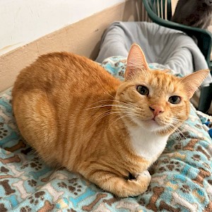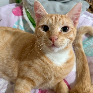 Marco, an orange and white tabby, is a very friendly cat. He enjoys playing with toys and is quick to make new human friends. He tends to be Poly’s caretaker and adopting Marco and Poly together would be incredible. They would complement each other and be best friends for life.