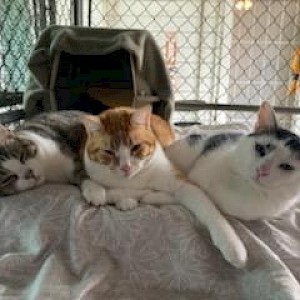 These sweet cats were checked by a vet who confirmed they are neutered, healthy and ready to be adopted by a family that understands a pet is forever and not something you toss out with the trash. Micah, Marshall, Max, Midnight and Mason are available for adoption, either as single cat adoptions or as bonded pairs.
