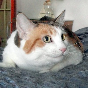 Opal has one of the most beautiful feline faces and markings ever and a sweet disposition too. This calico kitty is so loving and dear; she would make a wonderful pet.