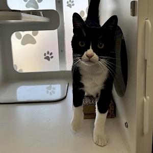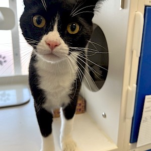 | Breed: | domestic short-haired black and white tuxedo |