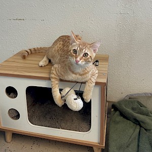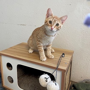 Orange tabby cats are known to be outgoing, affectionate and super friends. Social butterflies, they enjoy human interaction with their pet parents and strangers alike. Popeye is all that and more – he is also super playful.