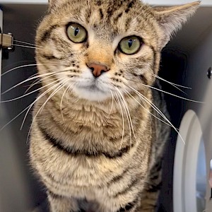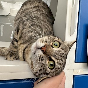 Robbie is one of the sweetest cats ever and like most mackerel tabbies, Robbie is playful and enjoys human companionship. Mackerel tabbies are also known as bold adventurers that enjoy completely exploring their surroundings. Mackerel tabby owners may be a bit partial but they also feel this breed of cat is more intelligent than other types of feline.