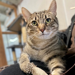 Mackerel tabbies make great pets. Known as happy-go-lucky cats, they are intelligent and playful as well as clever and entertaining. Famous mackerel tabbies include Morris; The Cheshire Cat; Garfield and Heathcliff; and Jenny-Any-Dots of the musical Cats who sleeps all day because she's been very busy all night being kind and affectionate to others.