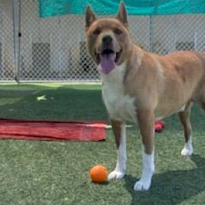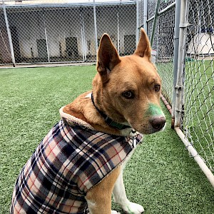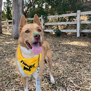 DNA testing reports that Riley is a Husky/American Staffordshire terrier mix and he weighs in at about 67 pounds. In general Huskies are intelligent, alert, outgoing, friendly and energetic. Typical traits of a Staffordshire terrier include tenacity, devotion, loyalty, attentiveness and courage. We think Riley demonstrates all of the above!
