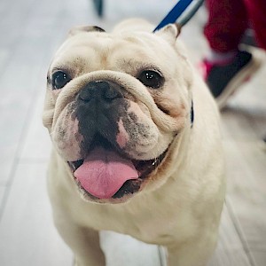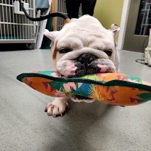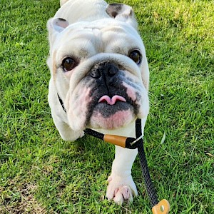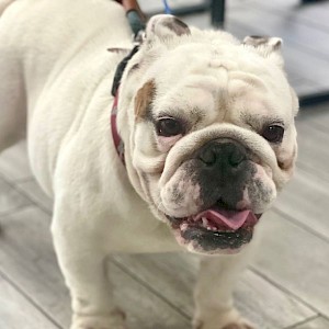 Bulldogs are brachycephalic dogs: breeds characterized by their shortened skulls and flattened faces. They can overheat and over-exert themselves very quickly. A harness must always be used instead of a leash attached to a collar for risk of tracheal collapse. Because of these special needs, a foster/adopter who has experience with brachycephalic dogs is preferred.