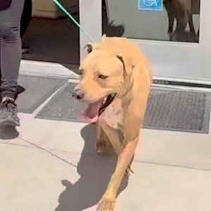 Trooper was adopted once during his stay at Orange County Animal Care Center. The adopter said Trooper was an amazing dog that loved the family and children very much. But the new owner had back disabilities and found Trooper (at 70 pounds) too difficult to walk frequently from the apartment they lived in.
