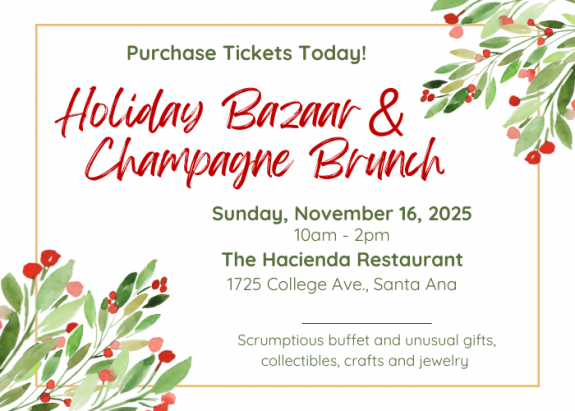 Enjoy an extensive buffet of scrumptious selections and shopping for many unusual gifts, collectibles, crafts and jewelry in the elegant Spanish-style courtyard of The Hacienda Restaurant. This is one of AALOC's most popular events/fundraisers so order tickets now to reserve your seats. Tickets are available for purchase online with the form below or print a copy of our flyer for a mail-in option.